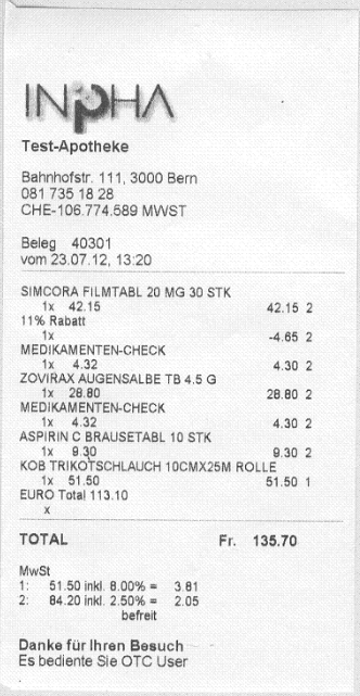 - DrawerKick + Ausdruck hängen zusammen. Die Schublade wird angesteuert / geöffnet, bevor oder nachdem die Quittung gedruckt wird (aber gedruckt wird sie). Das hängt mit dem elektronischen Journal und der Idee zusammen, dass jeder Verkauf auch zu belegen ist. Dort wo nur auf Verlangen Quittung abgegeben wird, wäre die Schublade offen zu lassen oder müsste jeweils manuell ausglöst werden.